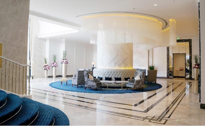 東海國(guó)際酒店位于深圳市福田區(qū)深南大道7888號(hào),建筑面積為14135㎡。我司主要承建酒店一層大堂吧、電梯間、十一至十八層客房部等部位的地面、墻面、天花裝飾工程,房間內(nèi)防水工程,機(jī)電工程等,造價(jià)3648萬元,工期252天。